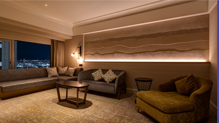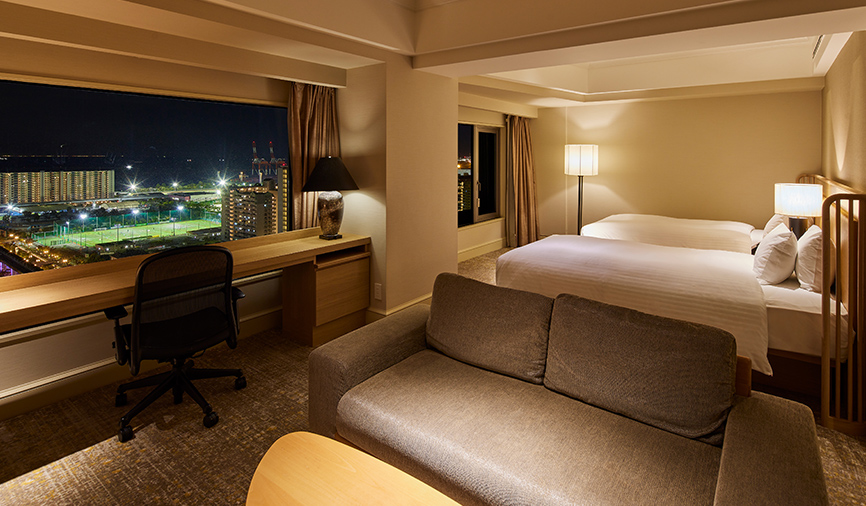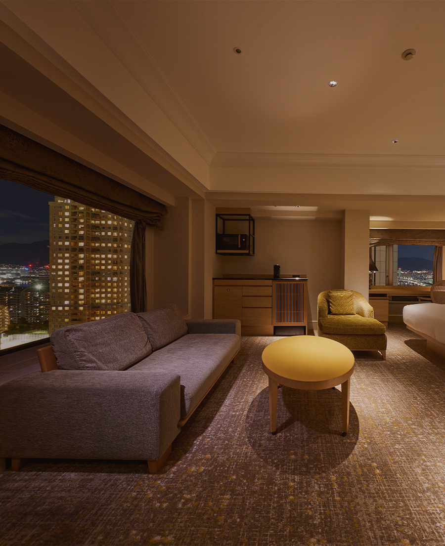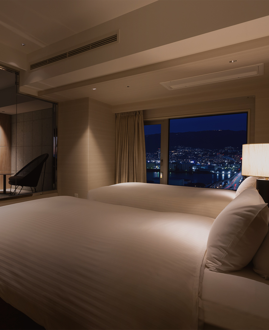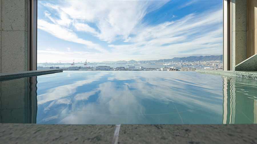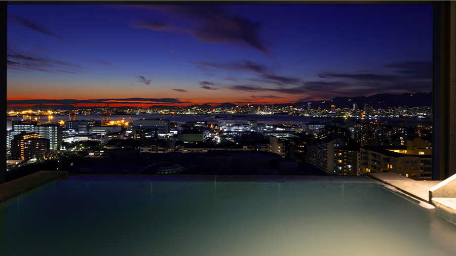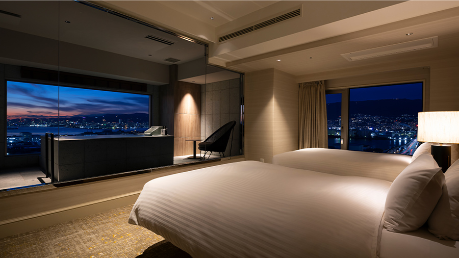 大きな窓が自慢のビューバスから1,000万ドルの夜景とも称される神戸の煌めきを臨む新客室も誕生。