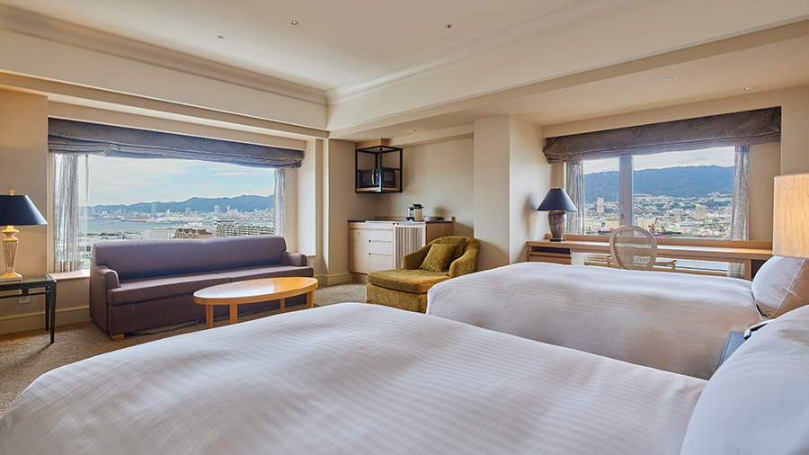 窓からは神戸のオーシャンビューが広がり、