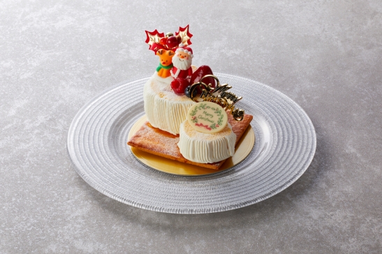 ケーキを乗せて、クリスマスの雪景色をイメージした可愛い見た目のアントルメです。