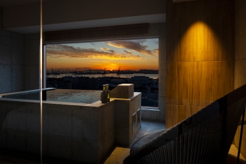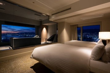客室名にも冠されたビューバスからは、神戸港と神戸市街地、そして壮大な六甲山まで一望でき、昼はやわらかな陽光に包まれた開放感、夜は「1,000万ドルの夜景」とも称される神戸の煌めきを、湯に浸りながらお愉しみいただけます。