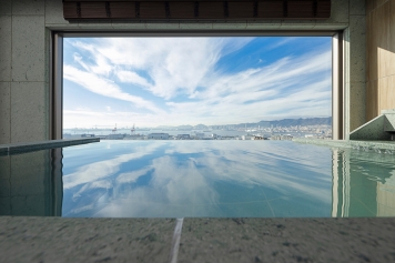 また、自家源泉の天然温泉を100%使った源泉かけ流しの温浴施設、神戸六甲温泉「濱泉」と宿泊フロアをダイレクトに結ぶ専用エレベーターを利用すれば、浴衣と専用スリッパでお気軽にご移動いただけます。隣接する「SpaLiving」もSPA直結フロア宿泊者専用の湯上り上がりスペースです。